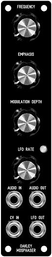 The unit includes a useful internal low frequency oscillator (LFO) with accompanying bicolour LED. The centre frequency of the phase shifter can also be controlled by an external control voltage. This allows envelope generators to be used to sweep the phaser to create filter type effects.