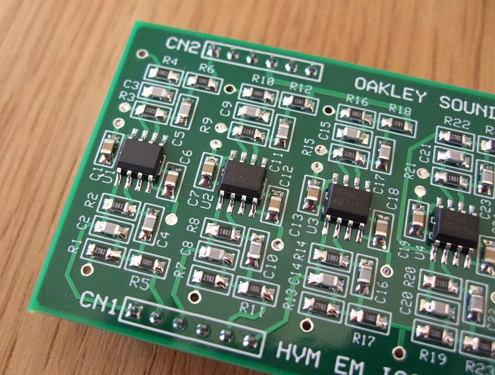 The HVM comprises of two printed circuit boards (PCBs) connected together with five 0.1 (2.54mm) single in line (SIL) headers and sockets. The main board on the rear of the module houses the seven filters and the power supply inlet. The pot board has the pots and sockets that are attached to the front panel, as well as the input and output circuitry. The main board is a four layer design, while the pot board is a two layer design. Each board is the same size; 40 mm x 107 mm.