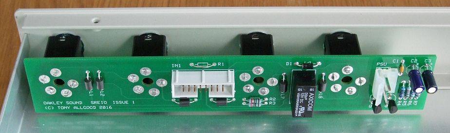 An optional input/output board has been designed to go with the SRE330 main board. This features space for four Switchcraft 114BPCX sockets and has a relay controlled muting circuit to reduce thumps on the audio outputs when the power supply is switched on and off.